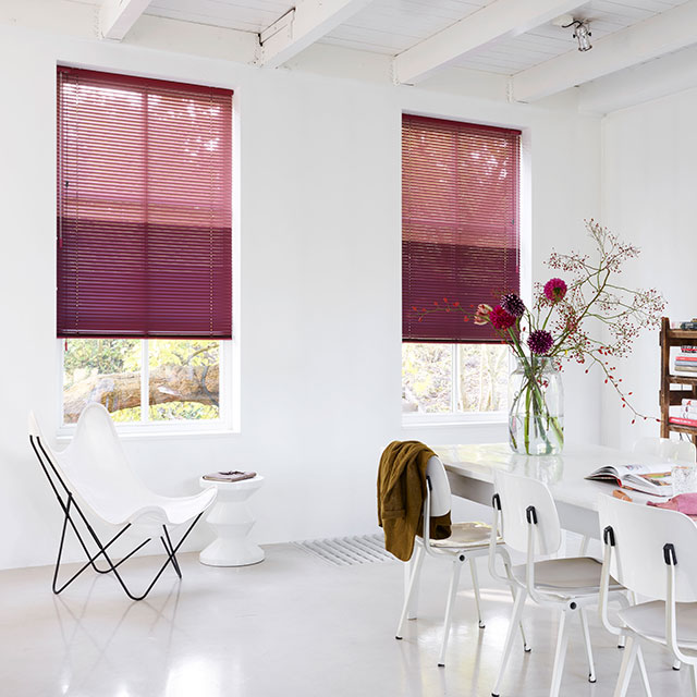Aluminium jaloezieën zijn beschikbaar met lamelbreedtes van 16, 25, 35 en 50 mm. Ben je op zoek naar een elegante uitstraling, kies dan voor een subtiele lamelbreedte. Wil je een statement maken met je interieur, kies dan de robuuste 50 mm lamellen.